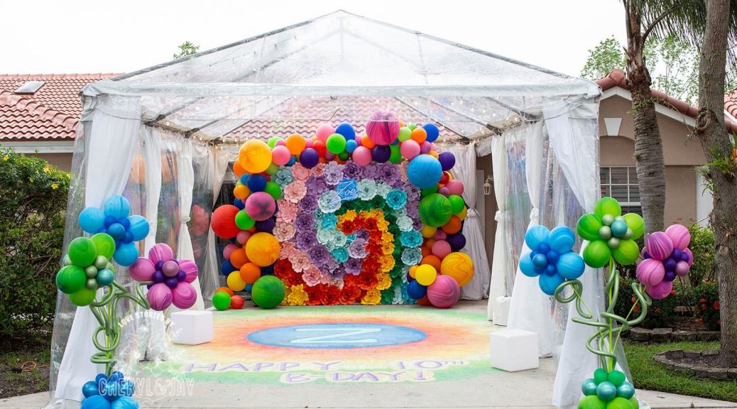 Recently, we helped one of our special clients celebrate their 10th birthday with a driveway event. Guests could drive by, wishing our client a happy birthday, or stop in for a socially distanced party. We transformed their driveway into a multi-colored, tie-dye extravaganza fitted with a tent, tables, goodie bags, and cupcakes! By partnering with GoFar Balloons and Bella Fiori Flower Walls, we were able to create a beautiful experience for all the attendees. Drive-by or stop in events such as these are great for celebrating anniversaries, graduation parties, birthday parties, and more while taking into consideration social distancing, health, and safety.